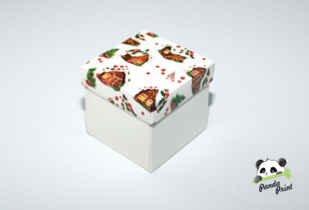 Коробка 100х100х95 Пряничный дом на белом фоне (белое дно)