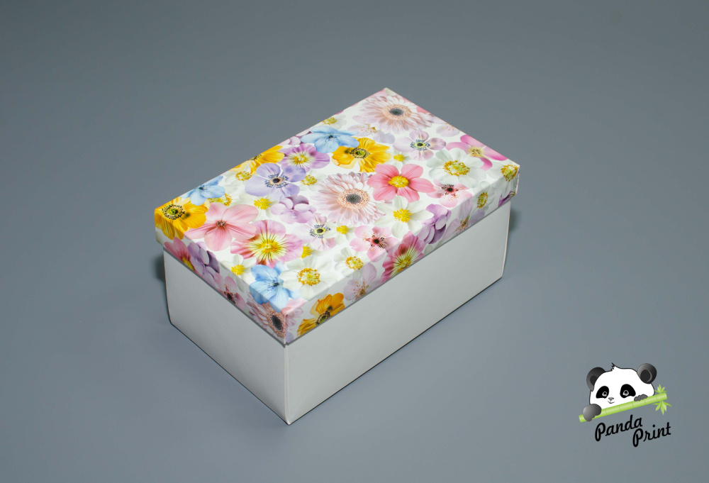 Коробка 120х200х100 Разноцветные цветы (белое дно)
