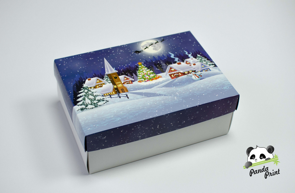 Коробка 270х190х100 Рождественская ночь (белое дно)