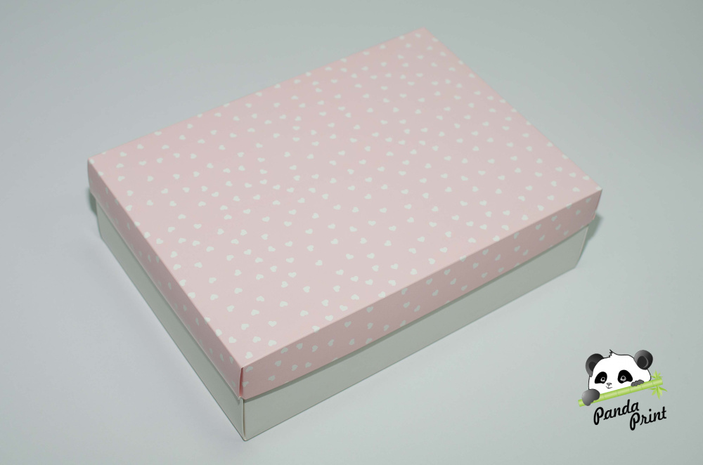 Коробка 350х250х100 Сердечки белые на розовом (белое дно)