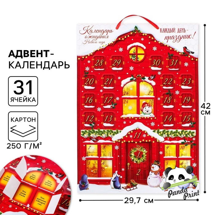 Адвент-календарь состоит из 31 ячейки, которые можно заполнить сюрпризами для вашего ребенка.