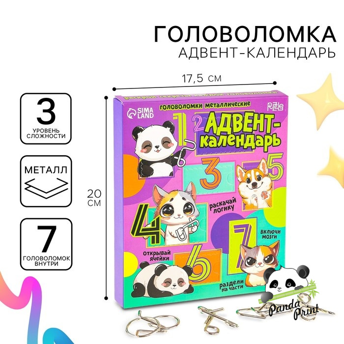 Адвент-календарь с металлическими головоломками "Включи мозги" 7 шт (арт.10485071)
