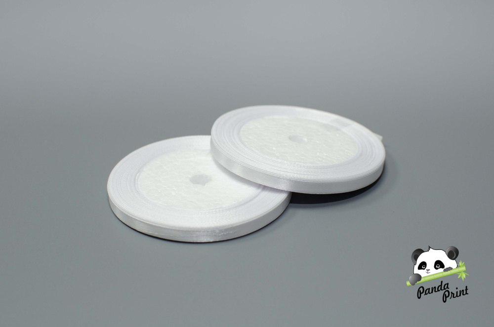 Лента атласная 0,6 см белая 23 м на пене