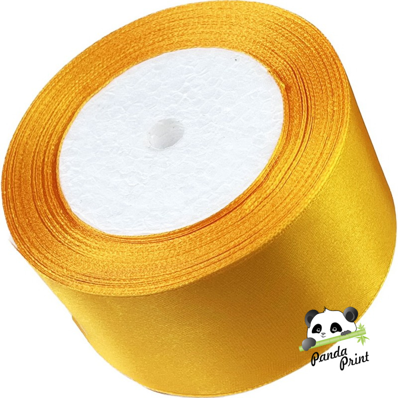 Лента атласная 4 см желтая (шафран) 23 м на пене