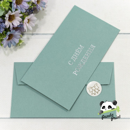 Конверт для денег плотный (003011/10) С Днем Рождения, тиффани