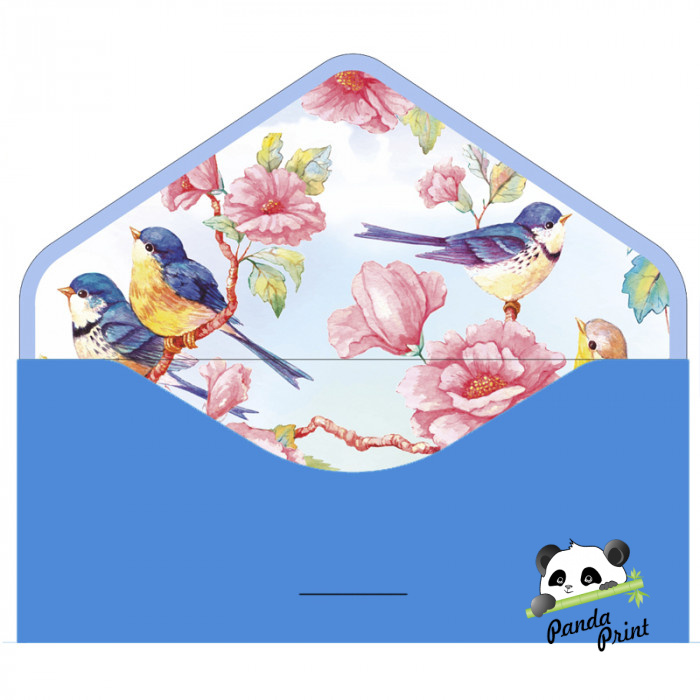 Конверт для денег Бархатный (БК-00011) Птички, ярко-голубой