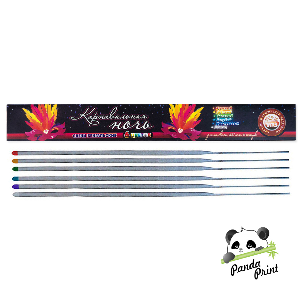 Бенгальский огонь 90 сек, Карнавальная ночь, ассорти, 30 см, 6 шт (арт.СБ300КН6)