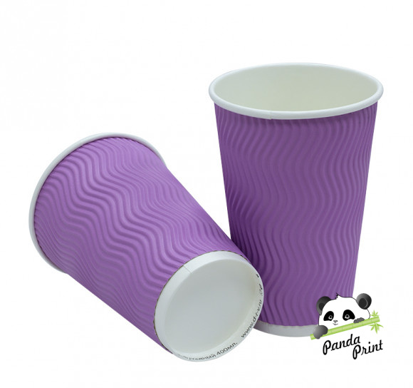 Бумажный стакан гофрированный 400 мл Волна Лаванда d89-90 мм (50 шт)