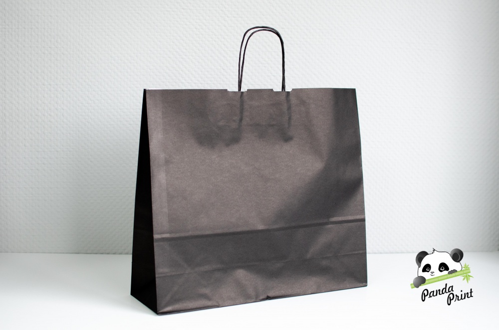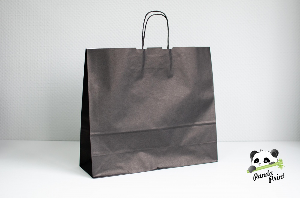 Пакет из белой бумаги (первичное сырье) окрашенной в черный цвет 80 г/м2 с крученой ручкой позволит Вам эффектно вручить подарок или получить желаемое в современной упаковке.