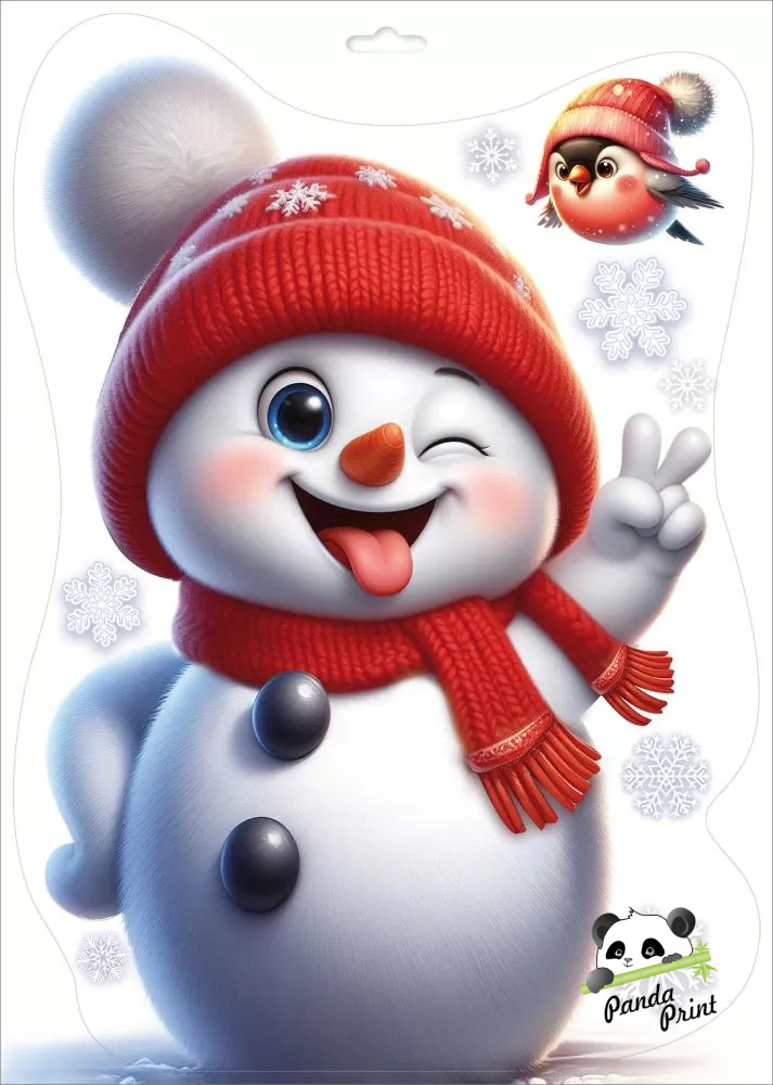 Наклейка двусторонняя Озорной снеговик 23,7х33,2 см (арт.021141)