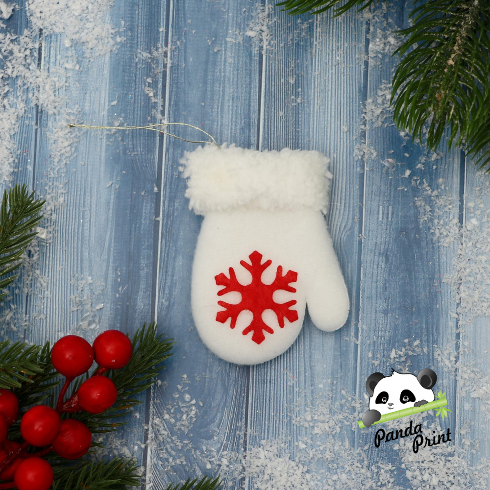 Подвеска мягкая "Варежка со снежинкой" 8х6 см, белая (арт.1102751)