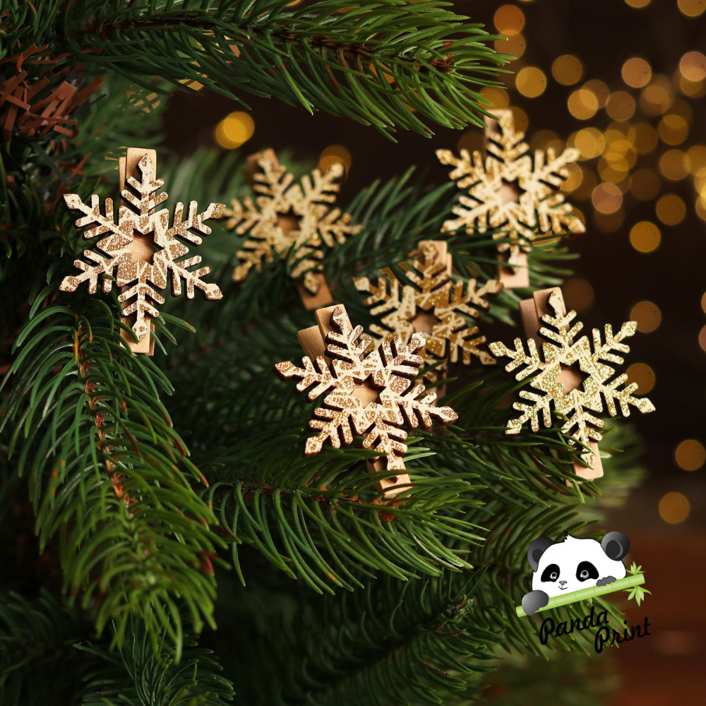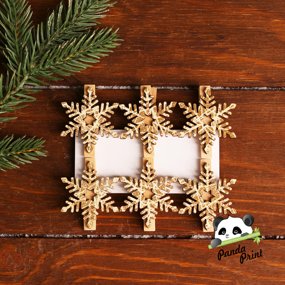 Прищепка с подсветкой Снежинки золото 12х8 см