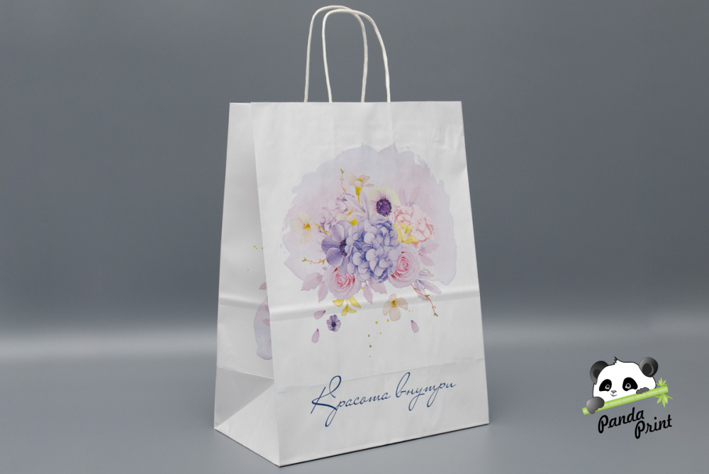 Крафт-пакет с кр. ручкой 260х150х350 белый, Красота внутри