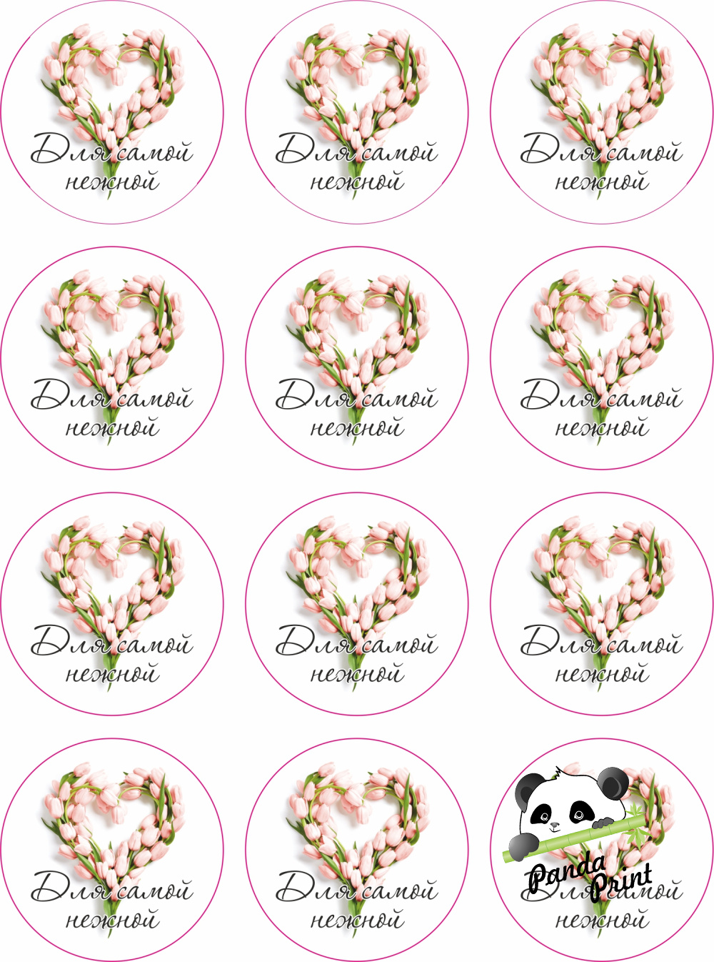 Набор наклеек Для самой нежной, сердце из розовых тюльпанов (12 шт)