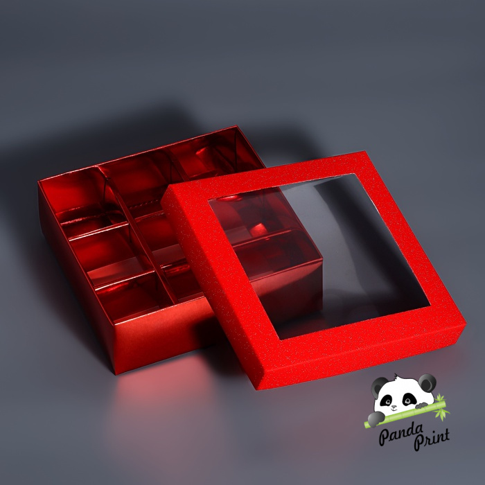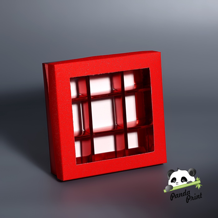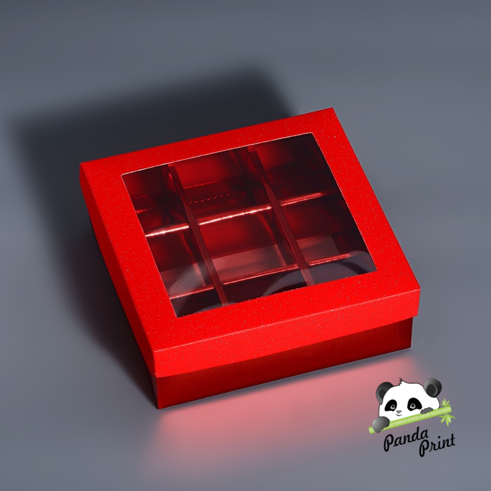 Коробка под 9 конфет с ячейками 125х125х40 Красный глиттер, 5 шт (арт.10746941)