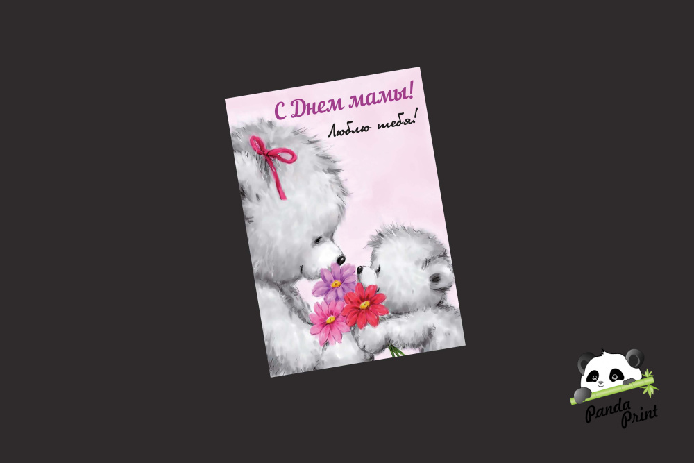 Открытка 70х100 мм С днем мамы! плюшевые мишки