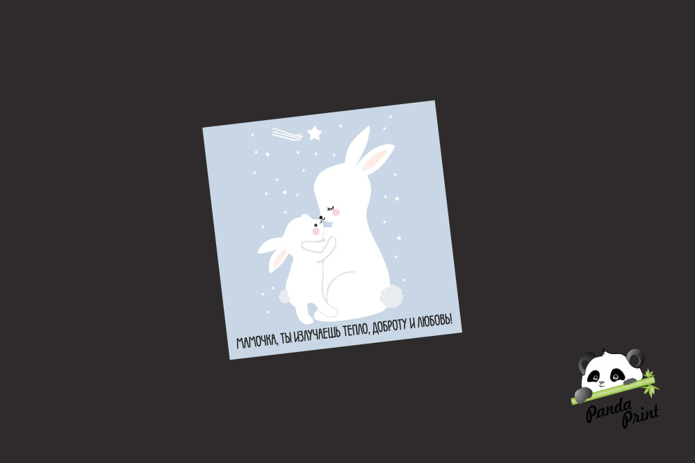 Открытка 80х80 мм Мамочка, ты излучаешь тепло! зайчики