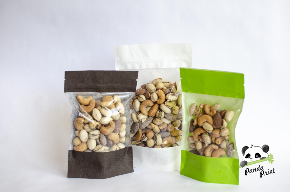 Пакет Дой-пак с ЗИП замком и прозрачным окошком 100 мм, материал Бумага/БОПП.