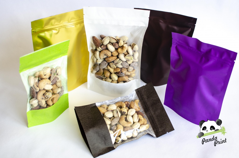 Пакет Дой-пак с ЗИП замком и прозрачным окошком 140 мм, материал Бумага/БОПП.