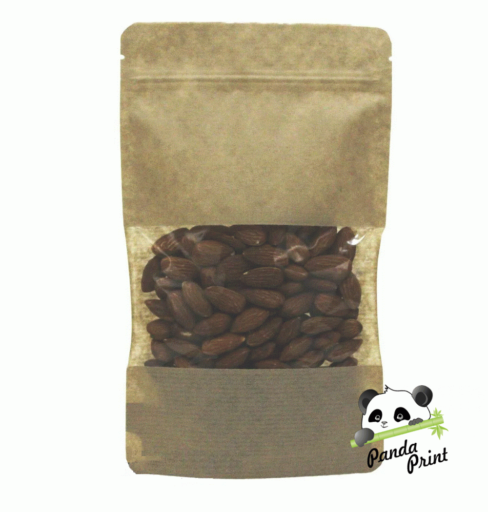 Пакет Дой-пак с ЗИП замком и прозрачным окошком 70 мм и закругленными углами, материал Бумага/БОПП, плотность 40 г.
