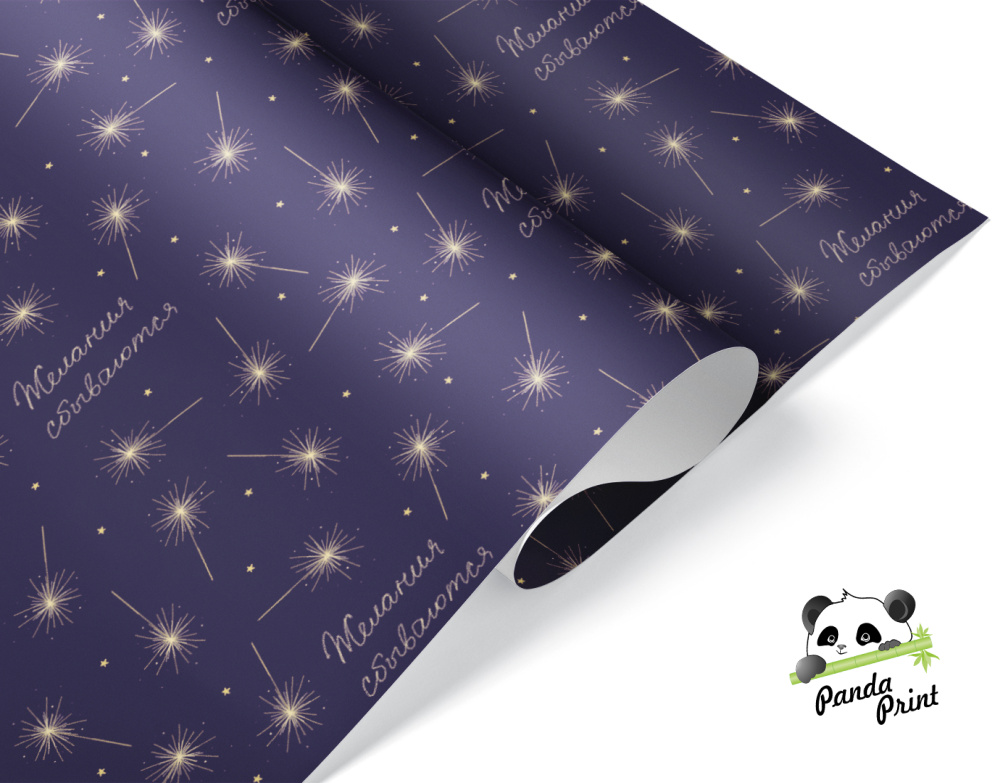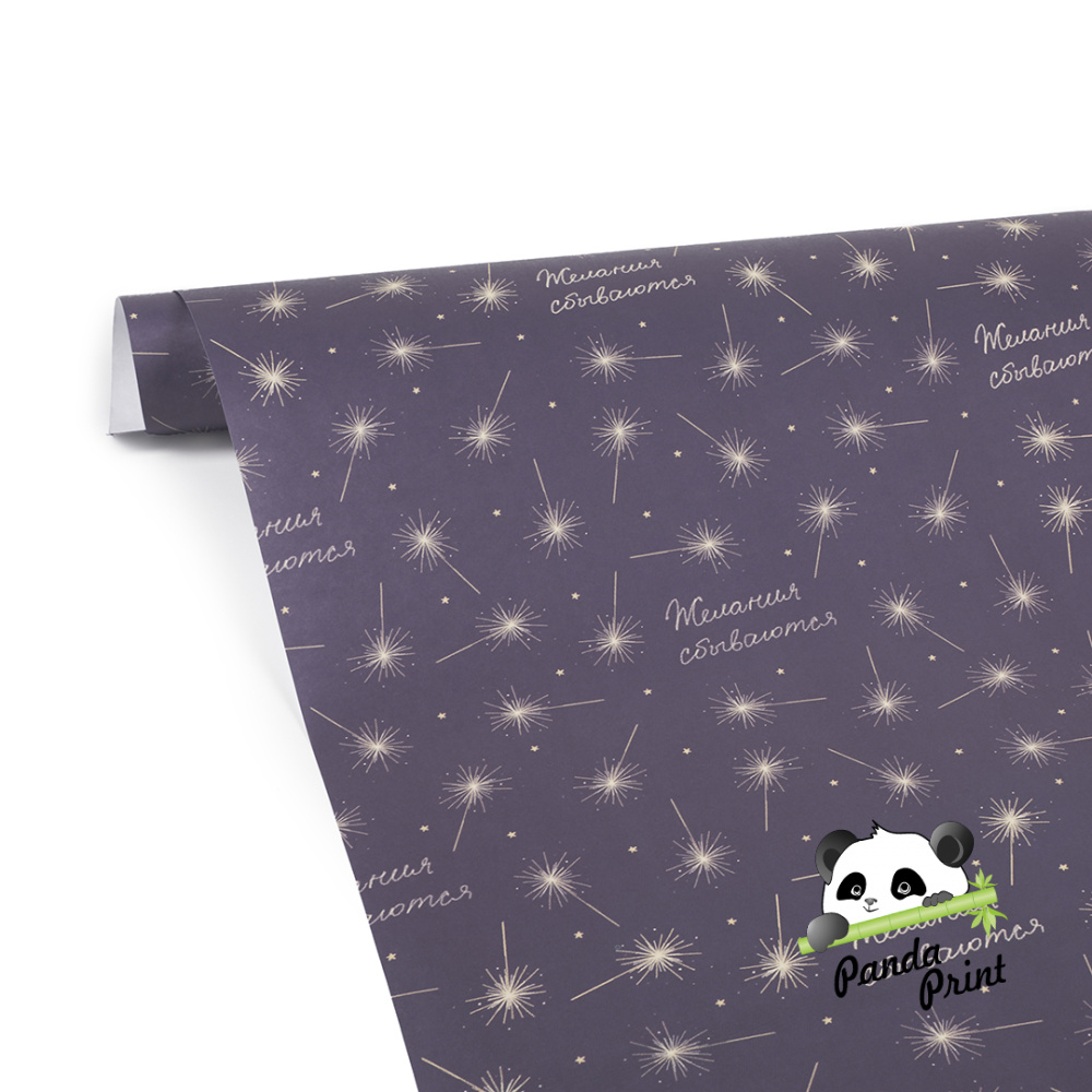 Упаковочная бумага в листах 0,7х1 м Желания сбываются, темно-синий, 10 л (арт.2050642)