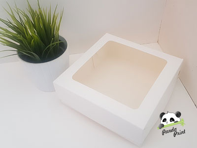 Коробка имеет прозрачную крышку, идеально подходит для кондитерских и других пищевых продуктов.