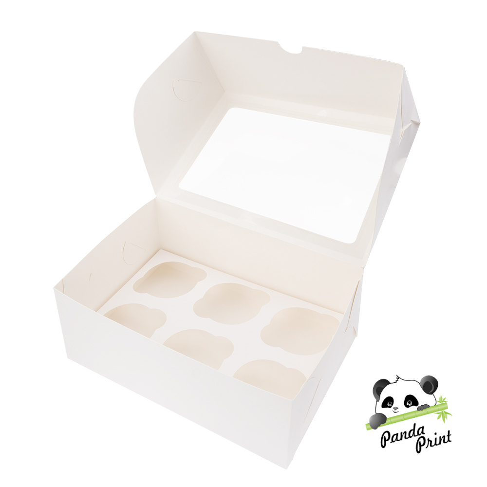 Коробка для капкейков изготовлена из белого картона, внутренний слой белый. Коробка самосборная, продается в разложенном виде.