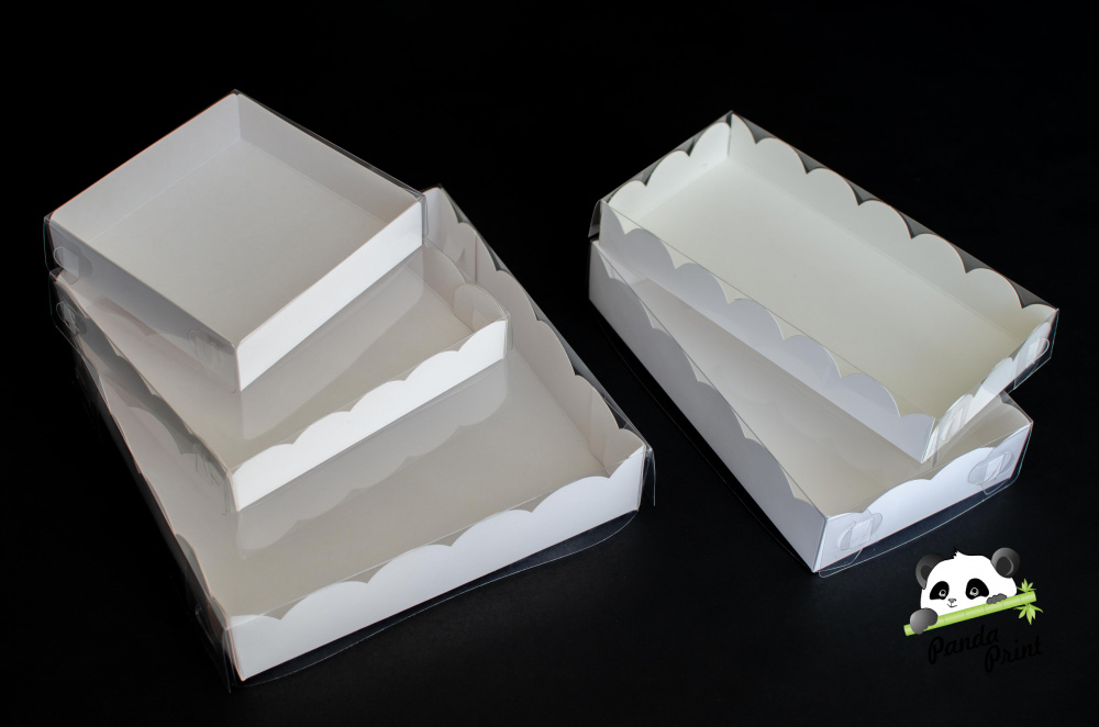 Коробка изготовлена из белого картона с прозрачной крышкой. Коробка самосборная, продается в разложенном виде.