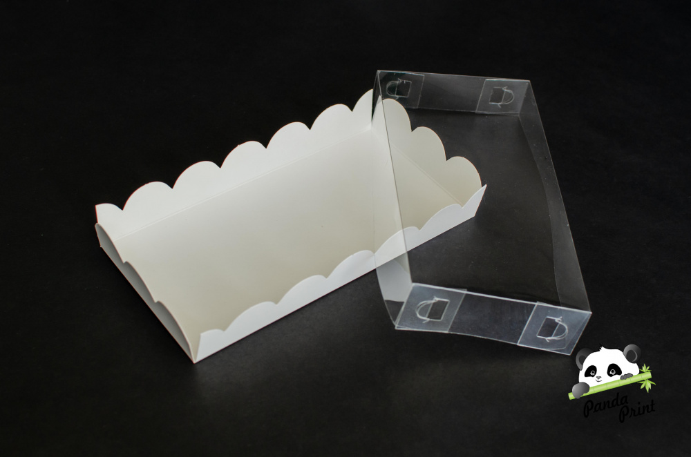 Коробка изготовлена из белого картона с прозрачной крышкой. Коробка самосборная, продается в разложенном виде.