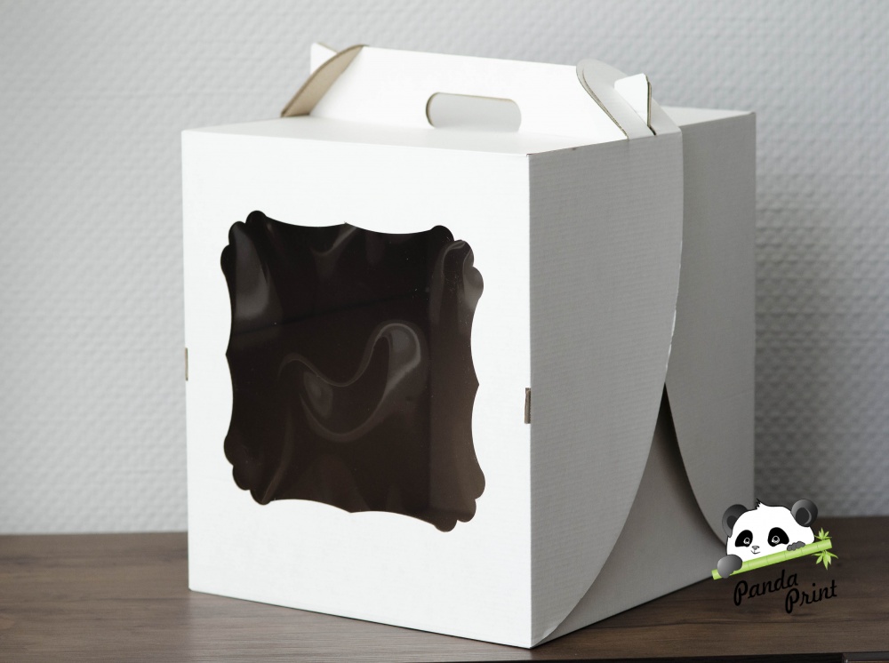 Коробка с прозрачным окном и ручкой для торта 260х260х300 белая