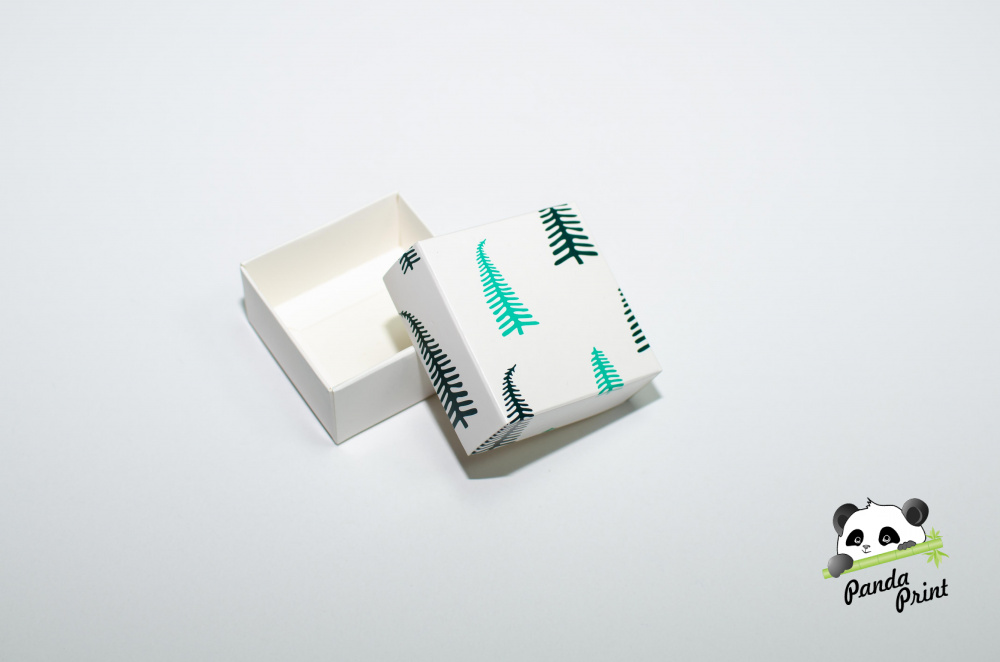Коробка изготовлена из крафт картона. Крышка с цветным рисунком, дно коробки белое.