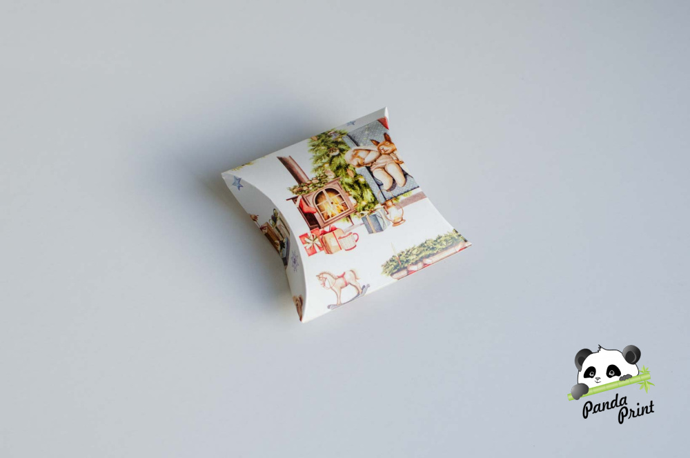 Коробка 89х89х25 Новогодний камин с зверятами (подушка маленькая)