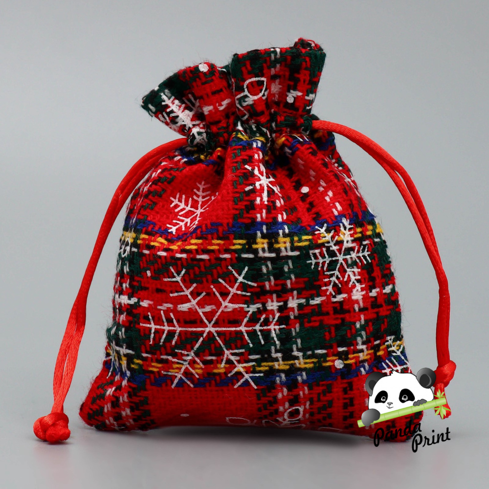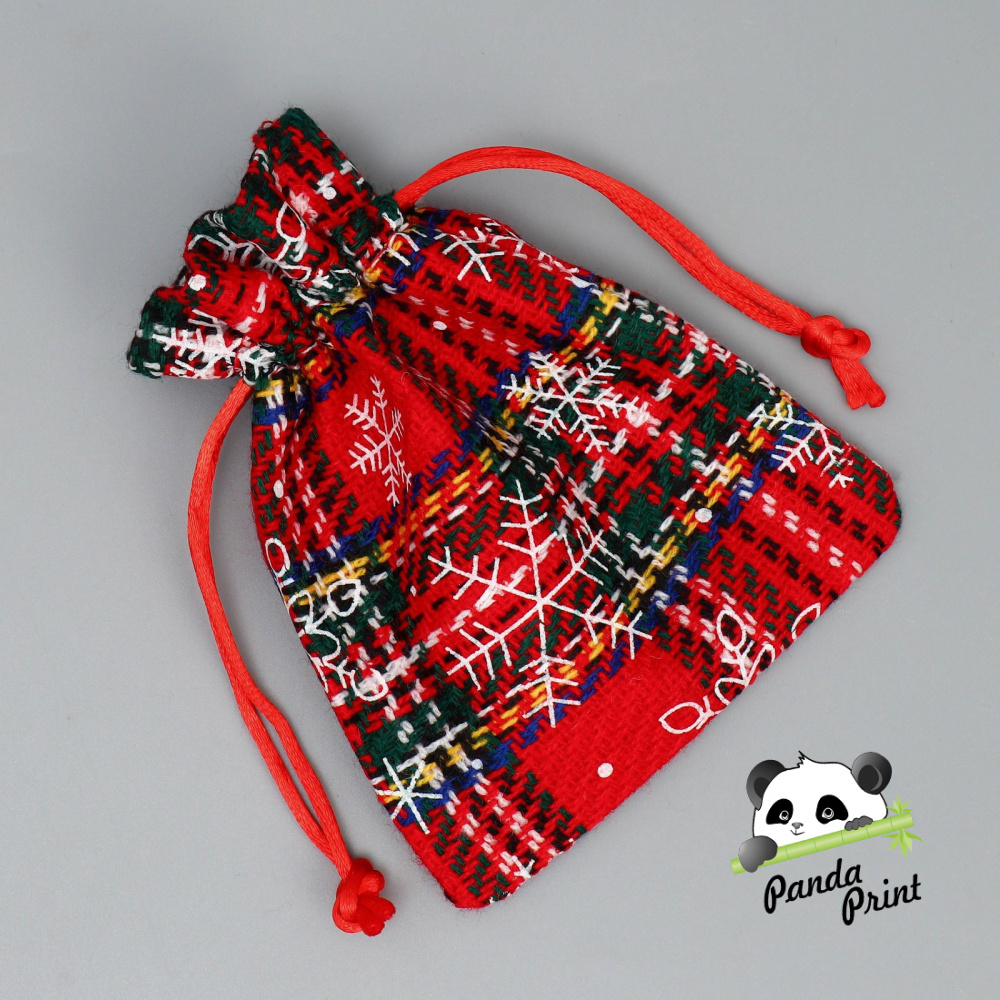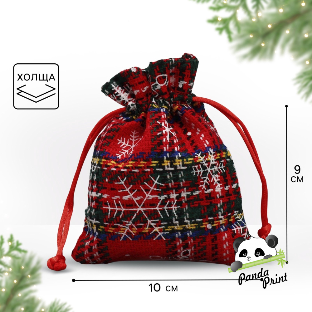 Мешочек подарочный из Холщи, красный, Вьюга, снежинки 10х12 см (арт.9717563)