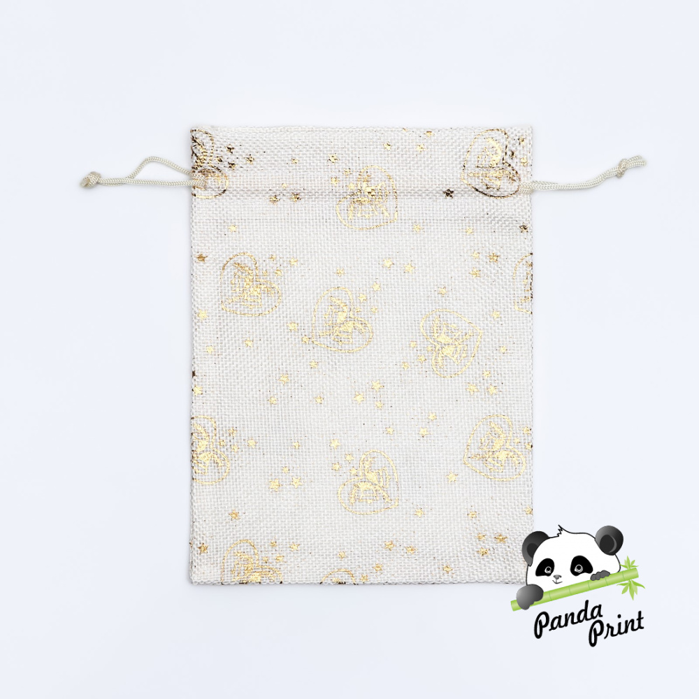 Мешочек подарочный из Холщи, молочный, Колокольчики золотые, 15х20 см (арт.9791270)