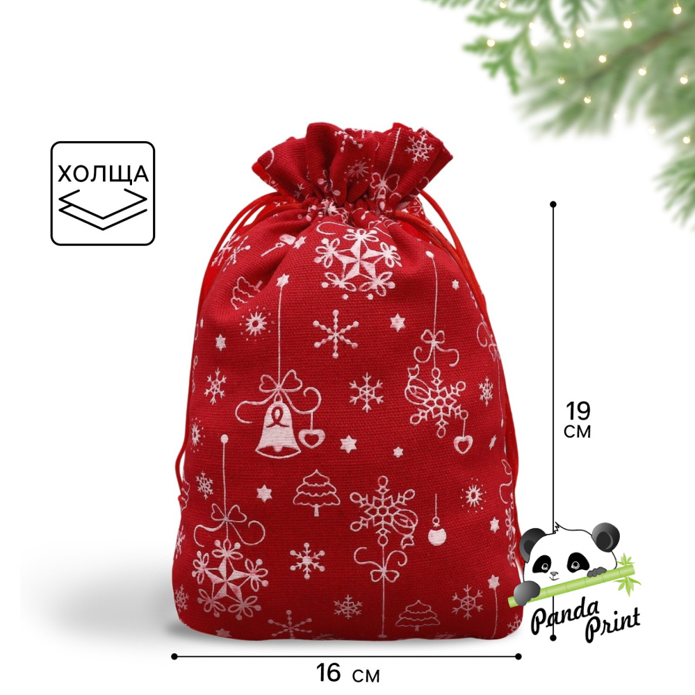 Мешочек подарочный из Холщи, Яркий Новый Год, красный, 16х24 см (арт.9717593)