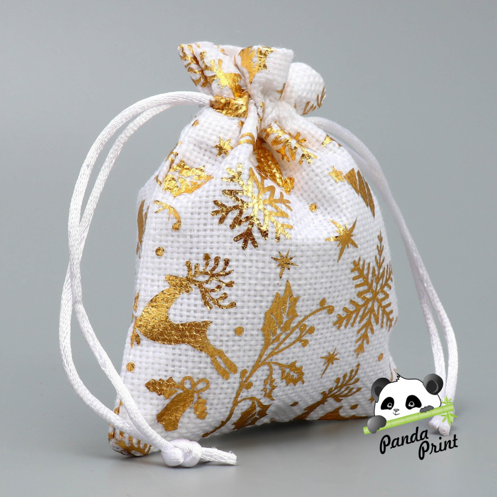 Мешочек подарочный из Холщи, Золотая метель, тиснение 10х12 см (арт.9717610)