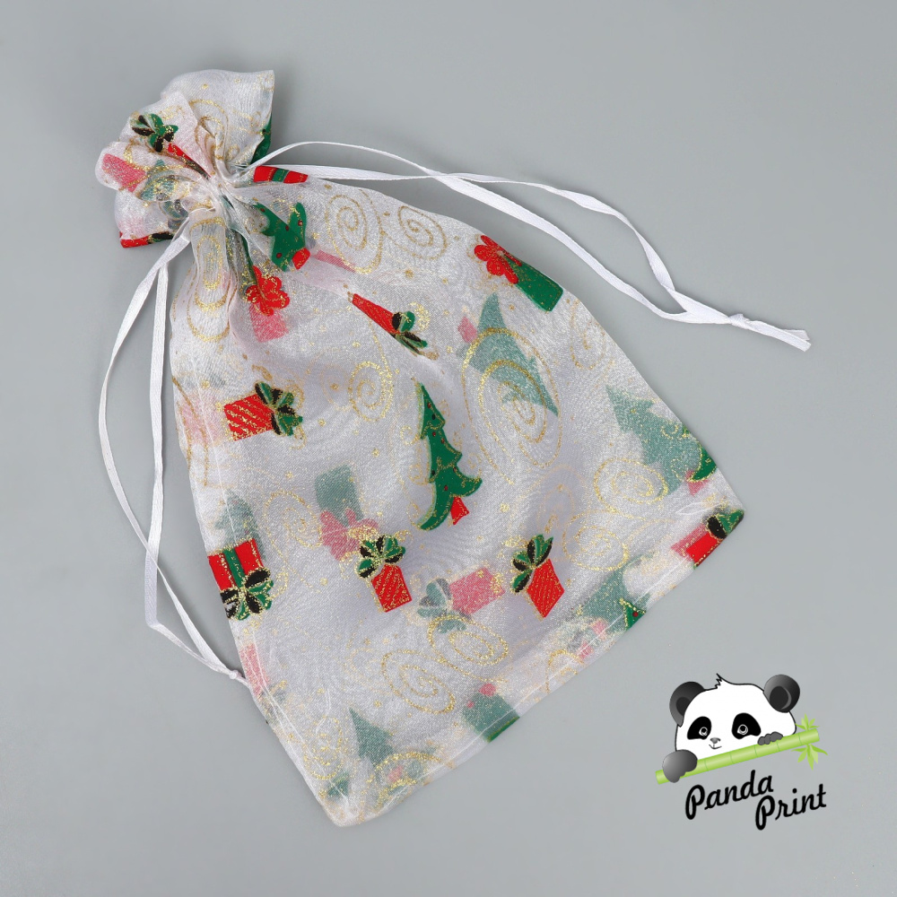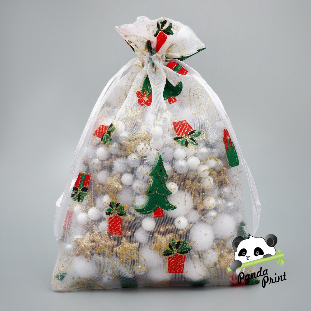 Мешочек подарочный Органза "Новогодние подарки" елочки и подарки, 16х24 см (арт.9717604)