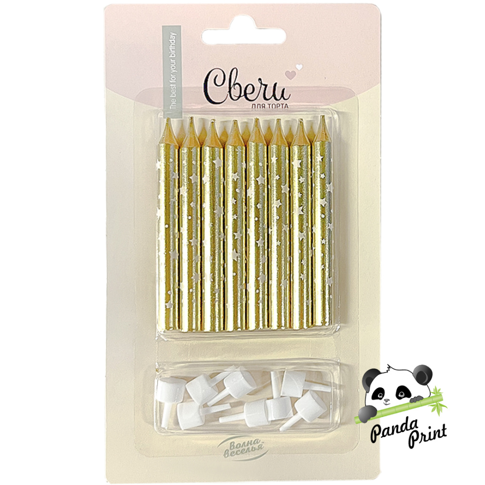 Свечи Белые звезды, золото, металлик, 8 см, 8 шт (арт.639248)