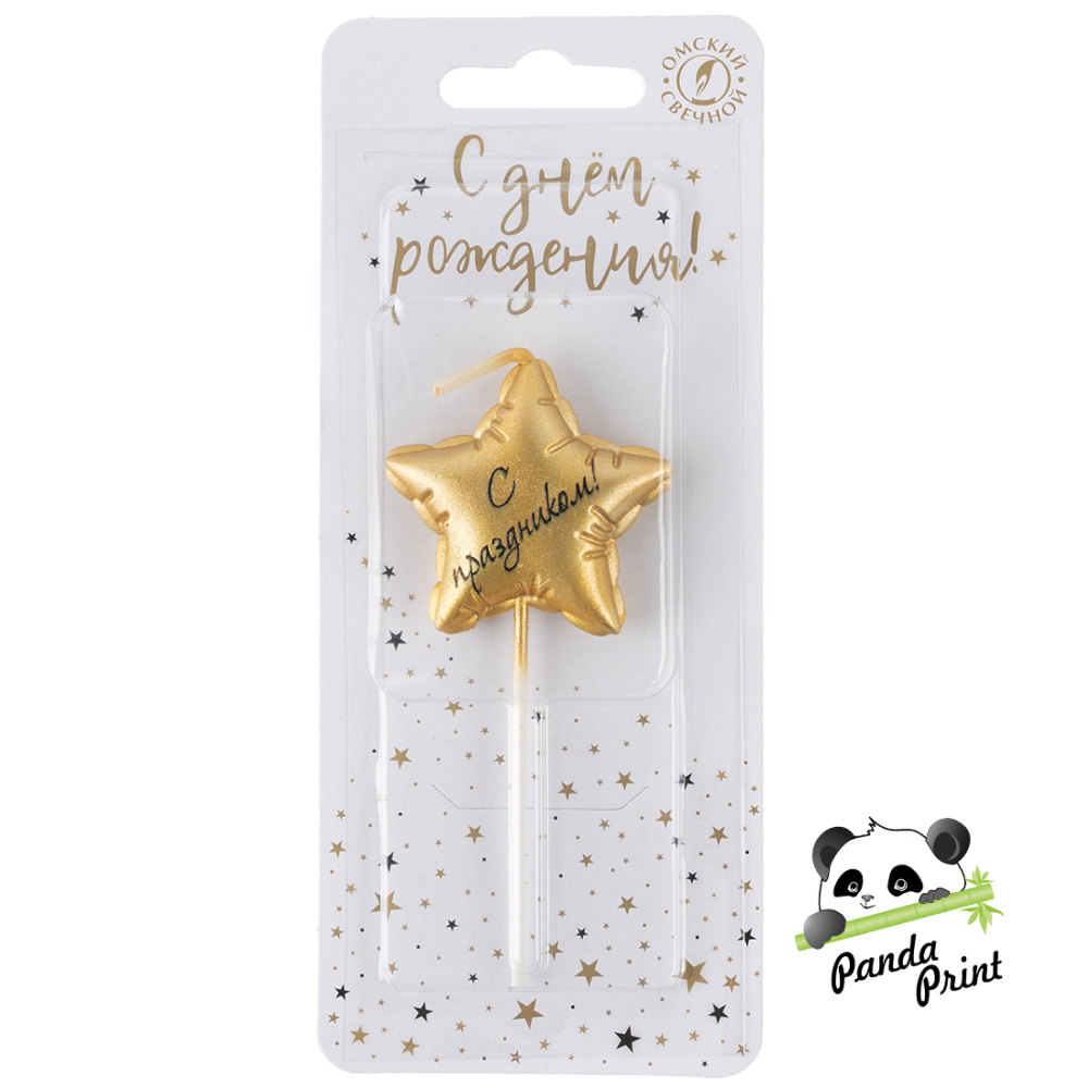 Свечи Звезда, Воздушный шар, на шпажке, золото, металлик, 4,2х4,8 см, 1 шт (арт.4809)