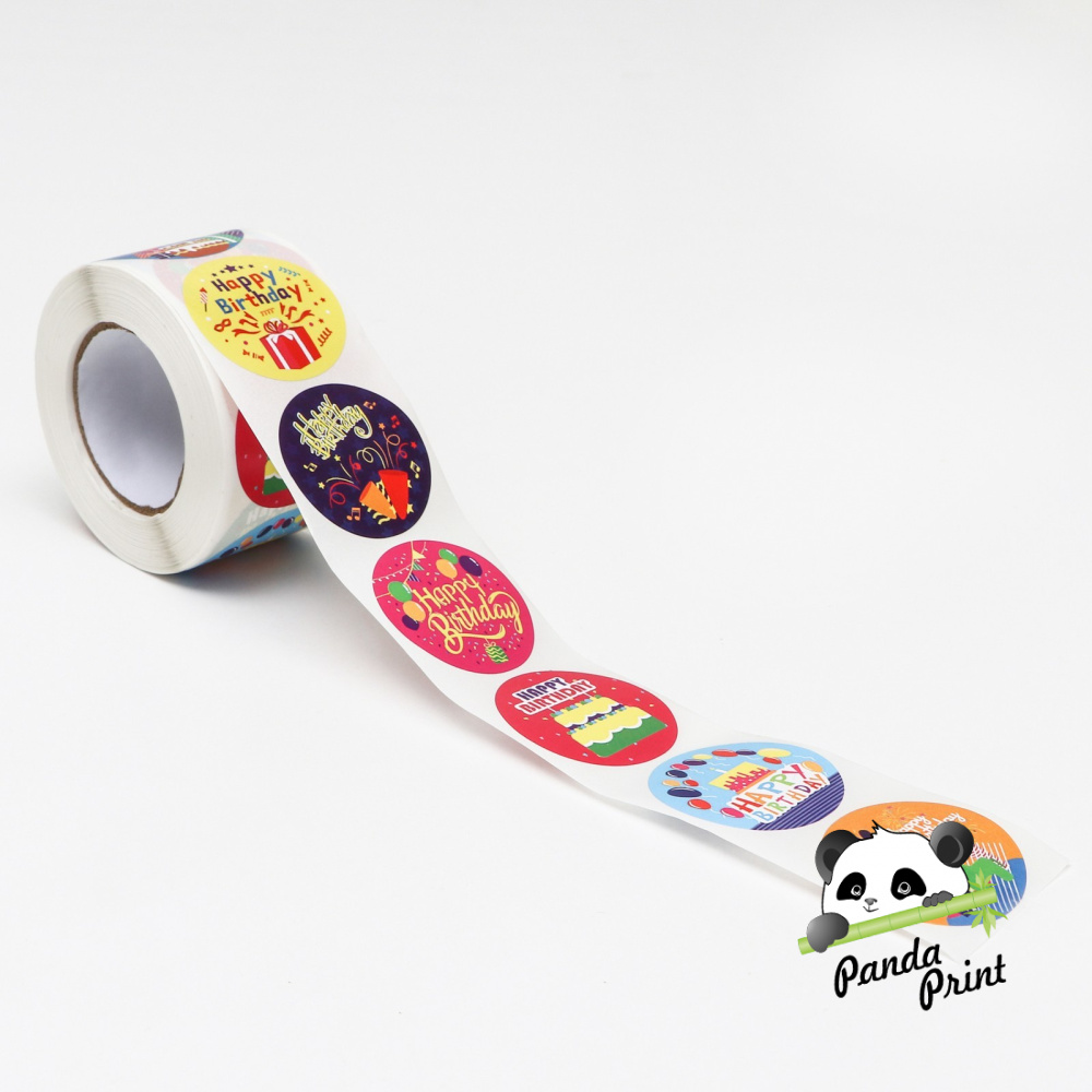 Наклейки в рулоне "С Днем Рождения" 3,8 см, 500 шт (арт.7904719)