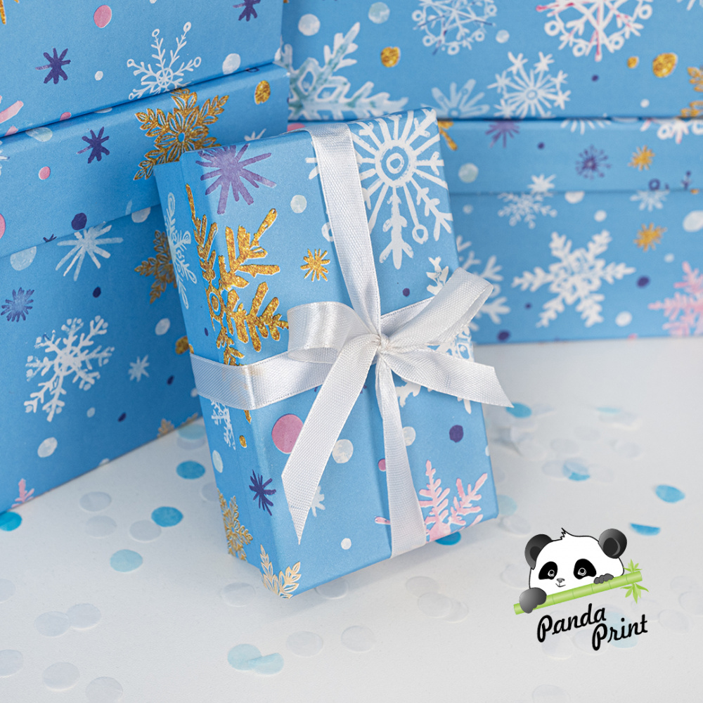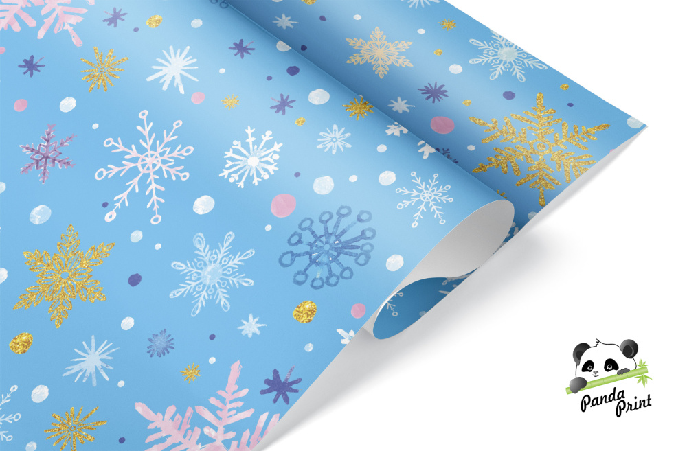 Упаковочная бумага в листах 0,7х1 м Волшебные снежинки, голубой, 10 л (арт.2050722)