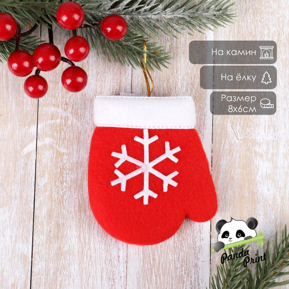 Декоративная мягкая подвеска "Новогодняя рукавичка" дополнит вашу елку и подарки на новогодние праздники.