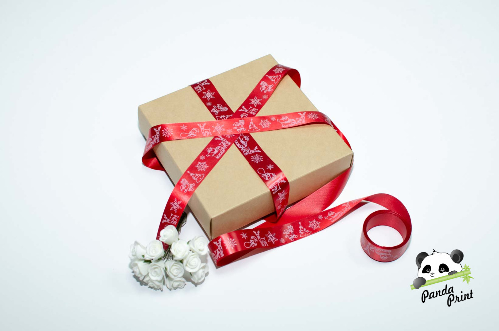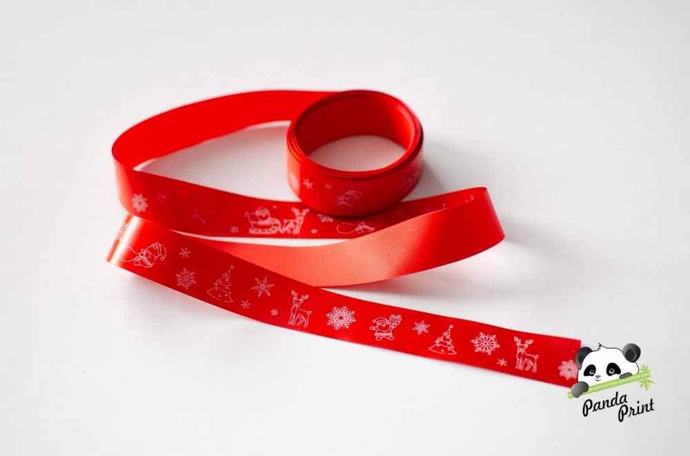 Сатиновая лента с с новогодним рисунком 20 мм х 5 м. Ленту используют для украшения подарков, коробок, букетов.