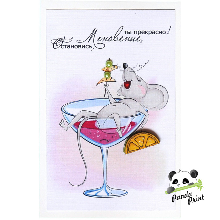 Открытка ручной работы 100х148 мм (5СО-037) Ты прекрасно! Мгновение, остановись! мышка