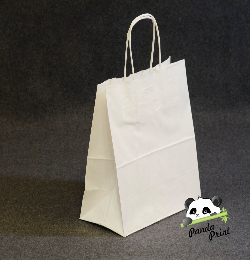 Пакет из крафт-бумаги белого цвета (первичное сырье) 80 г/м2 с крученой ручкой позволит Вам эффектно вручить подарок или получить желаемое в современной упаковке.