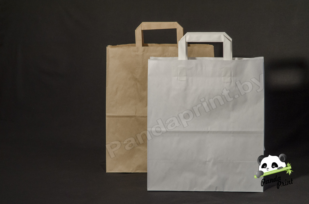 Крафт-пакет с плоской ручкой 320х200х370, белый