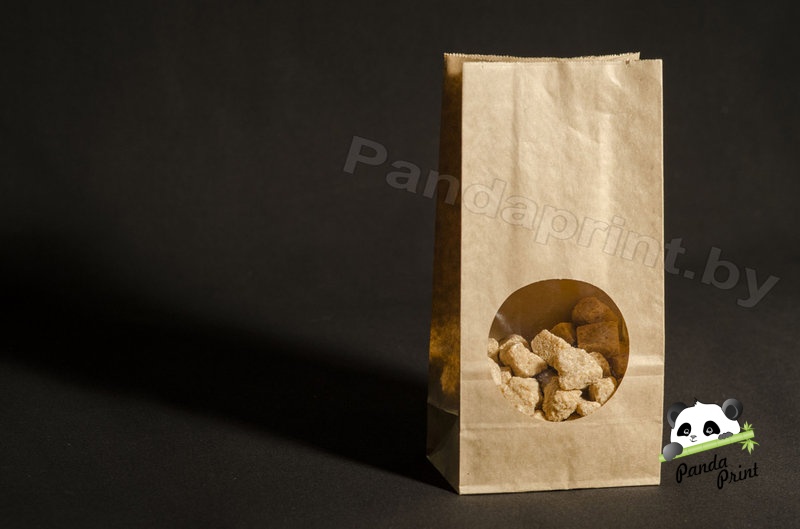 Крафт-пакет с пр.дн. и круглым прозр. окном 120х80х250, крафт