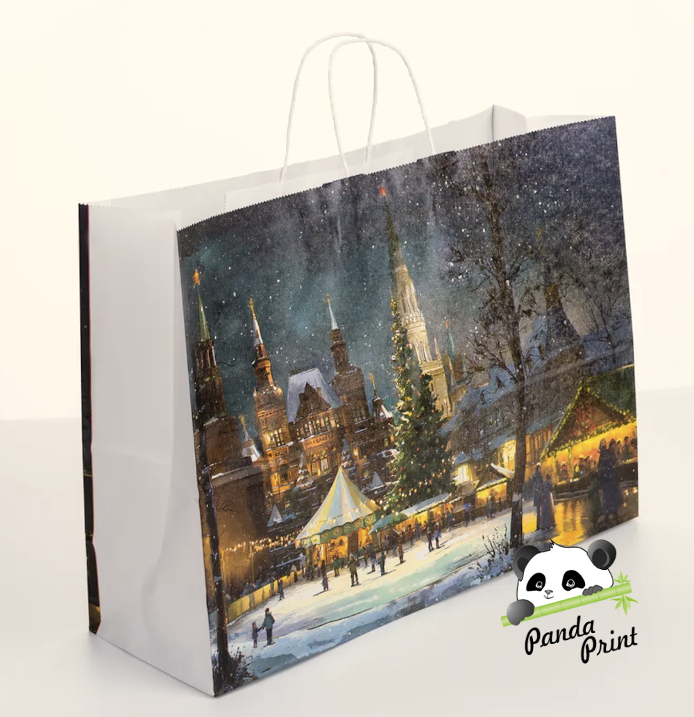 Бумажные пакеты (первичное сырье) с новогодним двухсторонним изображением.