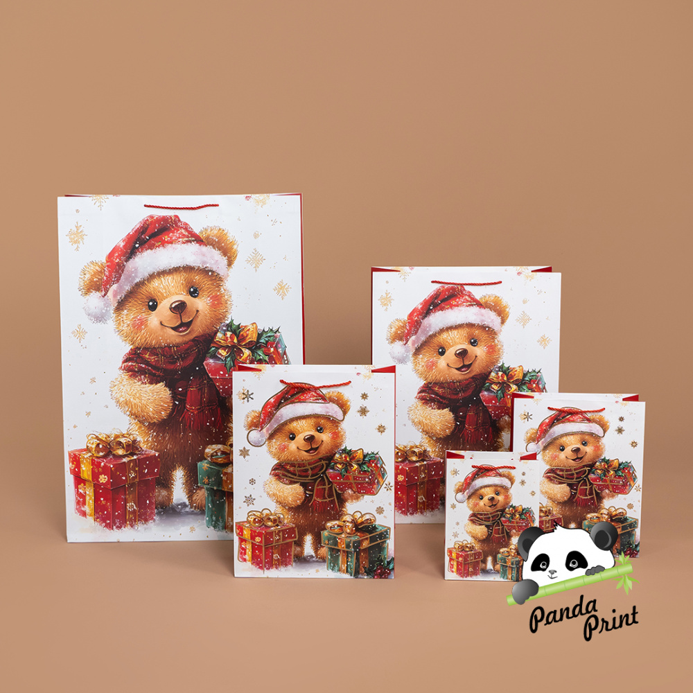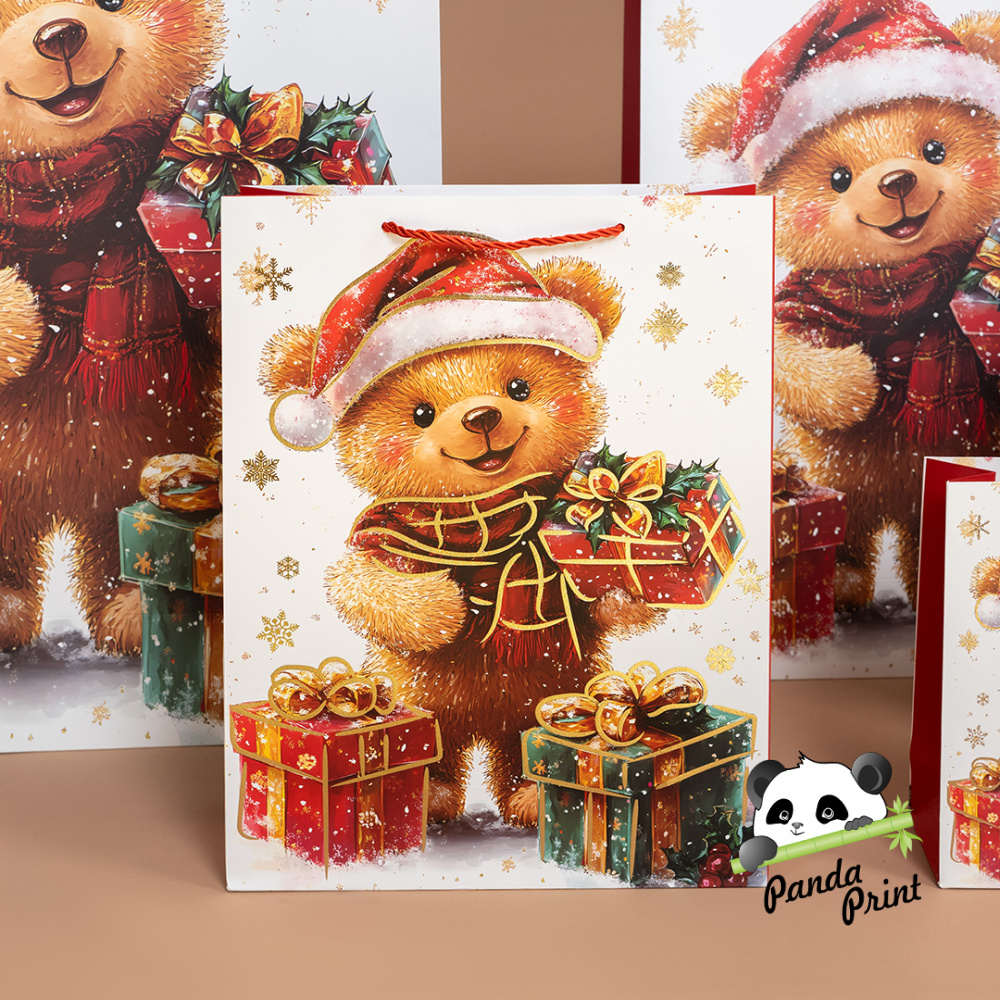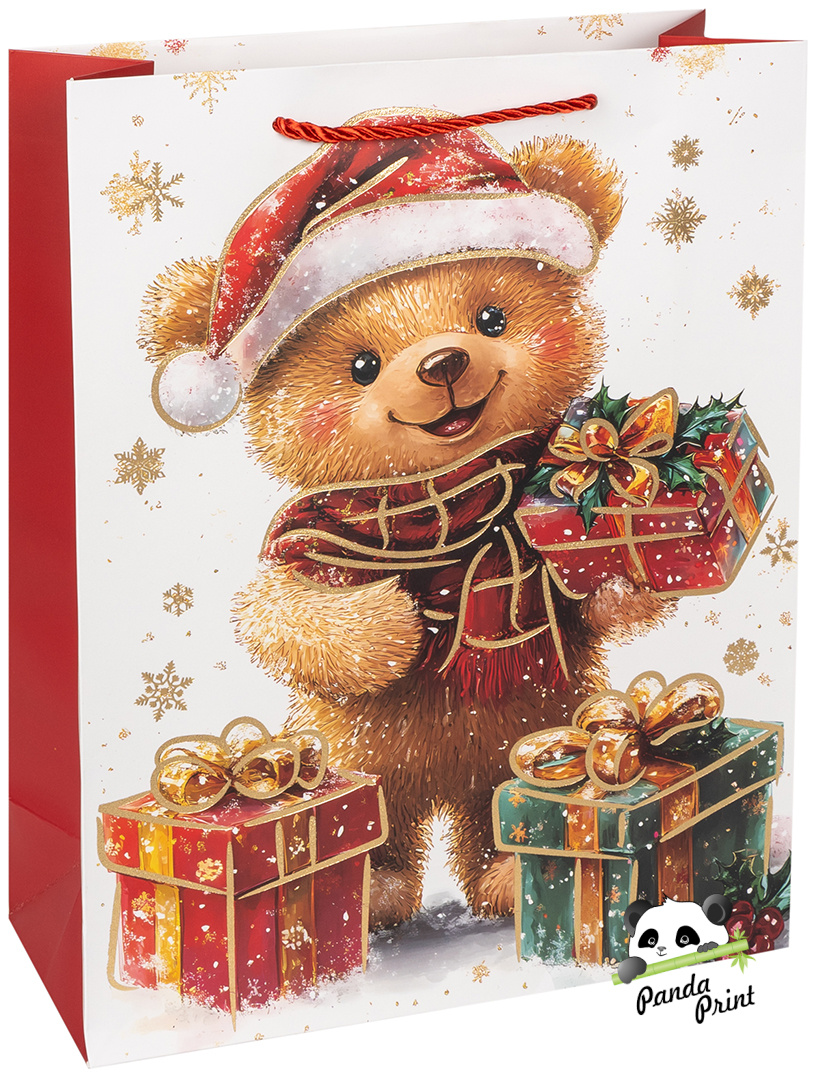 Пакет подарочный 26х10х32 см, 210 гр, Новогодний мишка, дизайн №1 (арт.6233884)