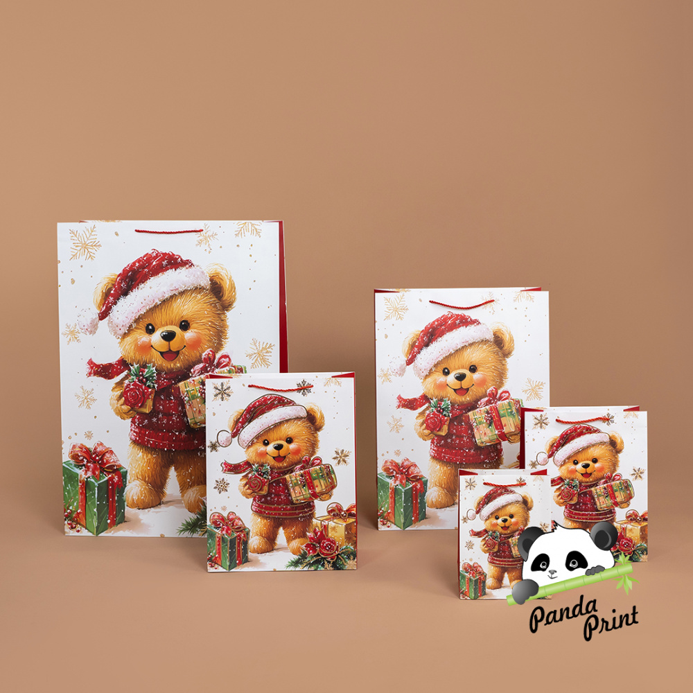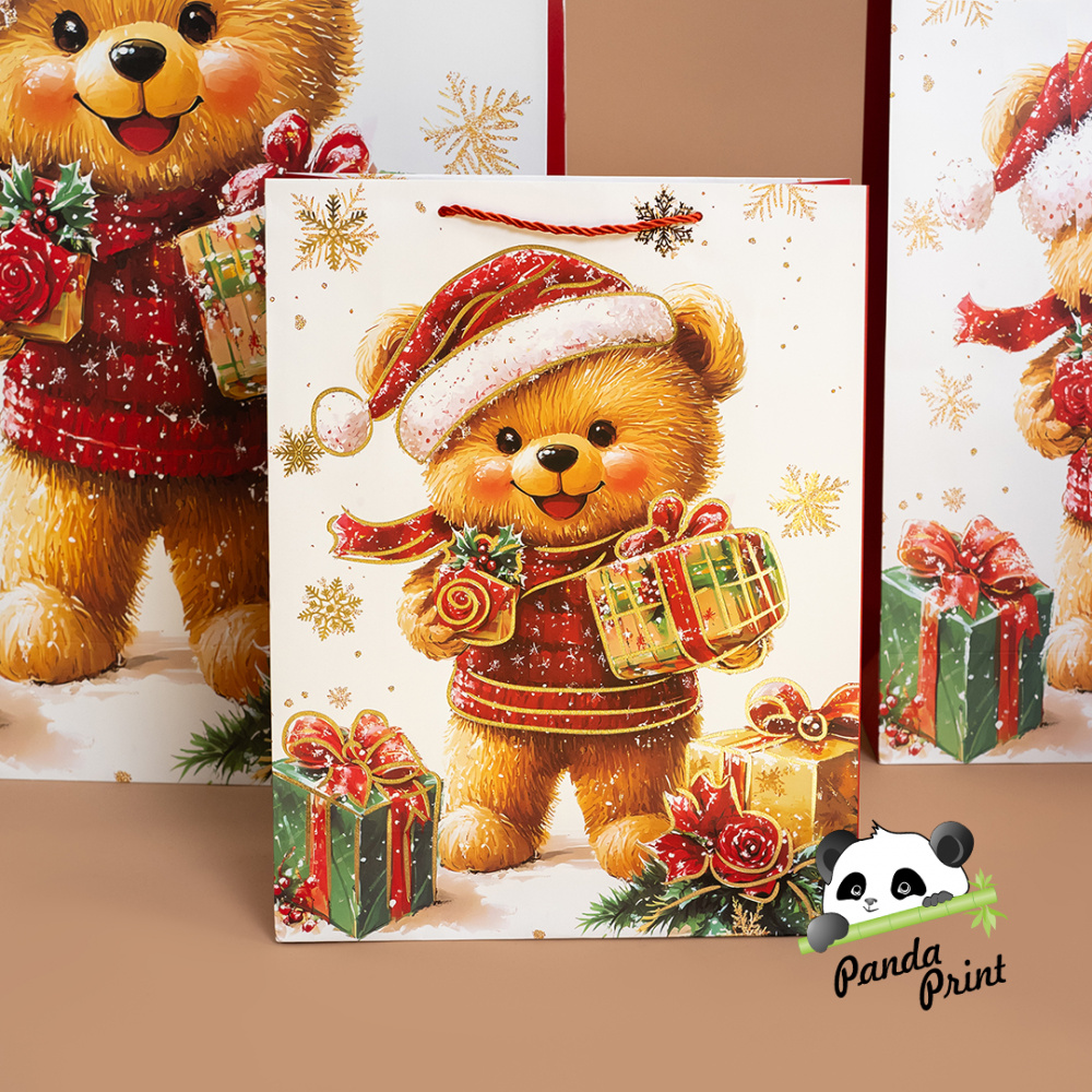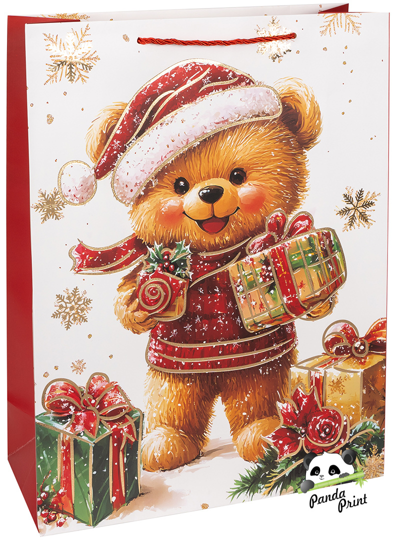 Пакет подарочный 26х10х32 см, 210 гр, Новогодний мишка, дизайн №2 (арт.6233885)